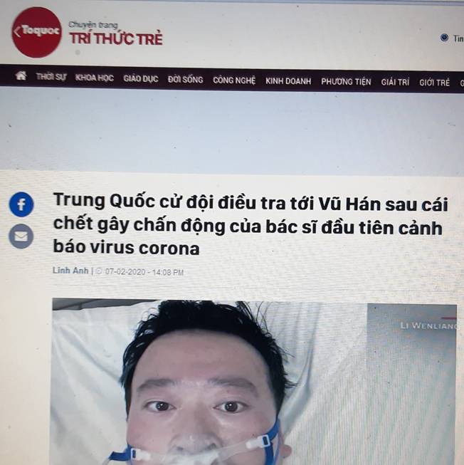 Tin tức về Cái chết của bác sĩ Lý Văn Lượng (Li Wenliang), Vũ Hán, Trung Quốc.