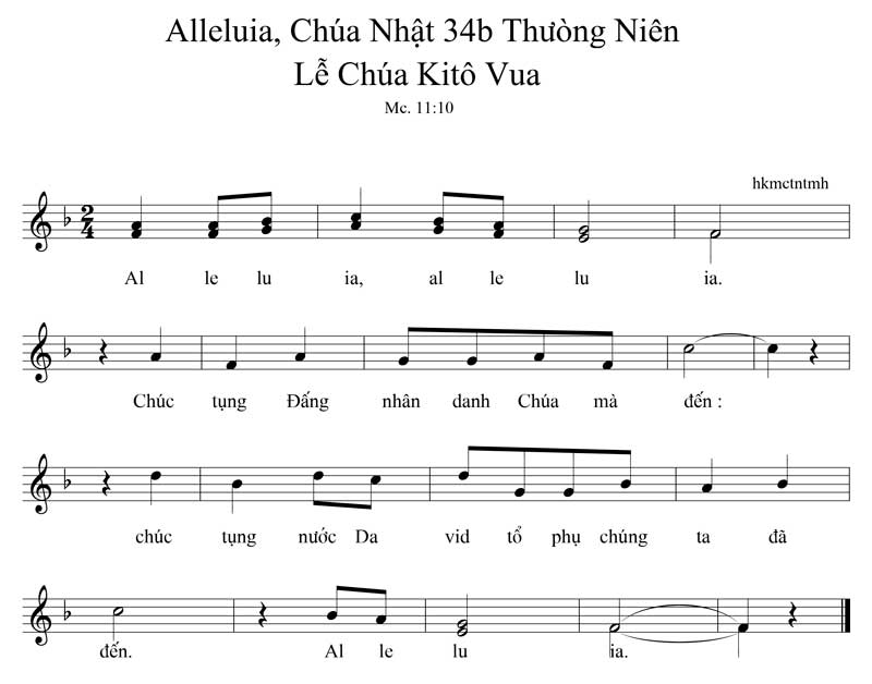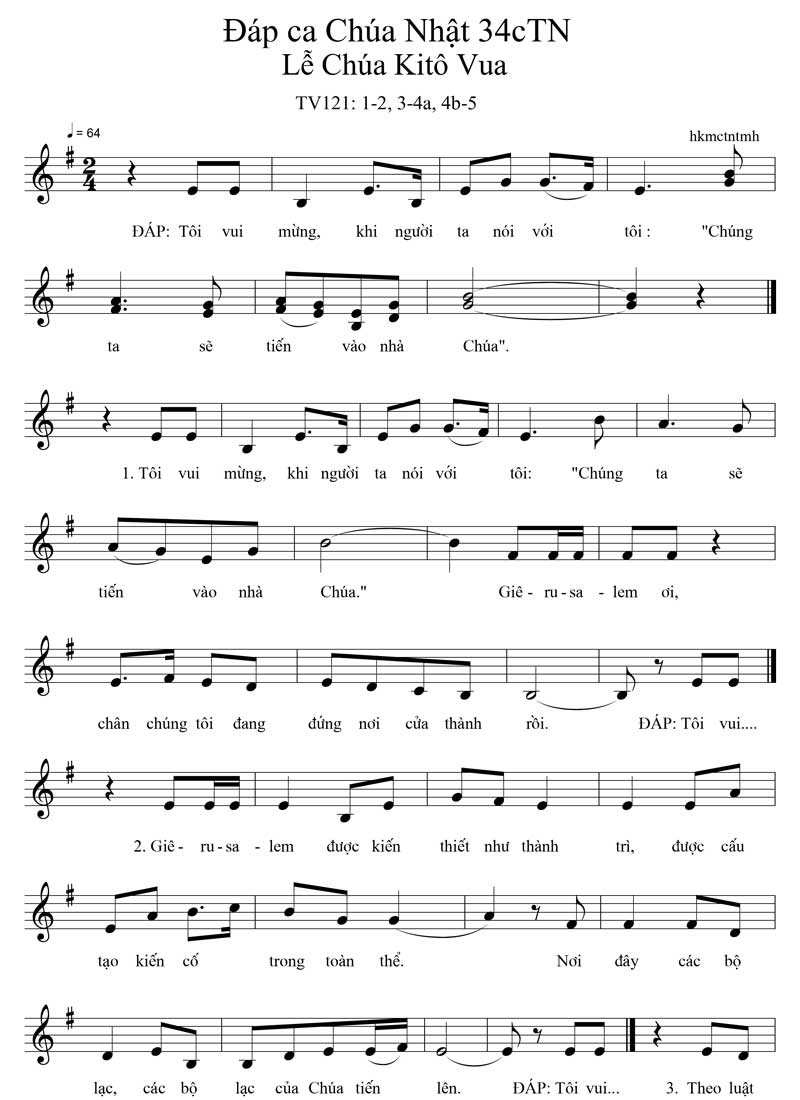 Chúa Nhật cuối cùng của năm Phụng Vụ, Giáo Hội mời gọi chúng ta chiêm ngắm Chúa Giêsu Kitô Vua vũ trụ. Thánh Phaolô viết “Mọi vật đã được tạo thành nhờ Người và trong Người” chúng ta được mời gọi đến và ở trong “Nước của Con yêu dấu của Người”. Thật vậy, Ngài là Vua trên tất cả các Vua và không giống bất cứ vị vua nào trên trần gian này. Vương vị của Chúa Giêsu là tình yêu, hy sinh phục vụ chứ không phải quyền uy và thống trị. Chúa không tự cứu mình khỏi thập giá nhưng đem loài người tội lỗi lên với Ngài để giải thoát họ khỏi cái chết. Lạy Chúa Giêsu, xin cho chúng con biết nhận ra Chúa chính Vua của tâm hồn và cuộc đời mình để đặt hết lòng tin tưởng, phó thác tuyệt đối nơi lòng thương xót của Ngài. Như tên trộm lành, ước gì trong giây phút cuối đời chúng con được Chúa thì thầm bên tai “ Ngay hôm nay, người sẽ được ở trên Thiên Đàng với ta”. Với tâm tình đó, chúng ta vui mừng hát lời thánh vịnh và tiến về Nhà Cha của chúng ta ở trên trời.