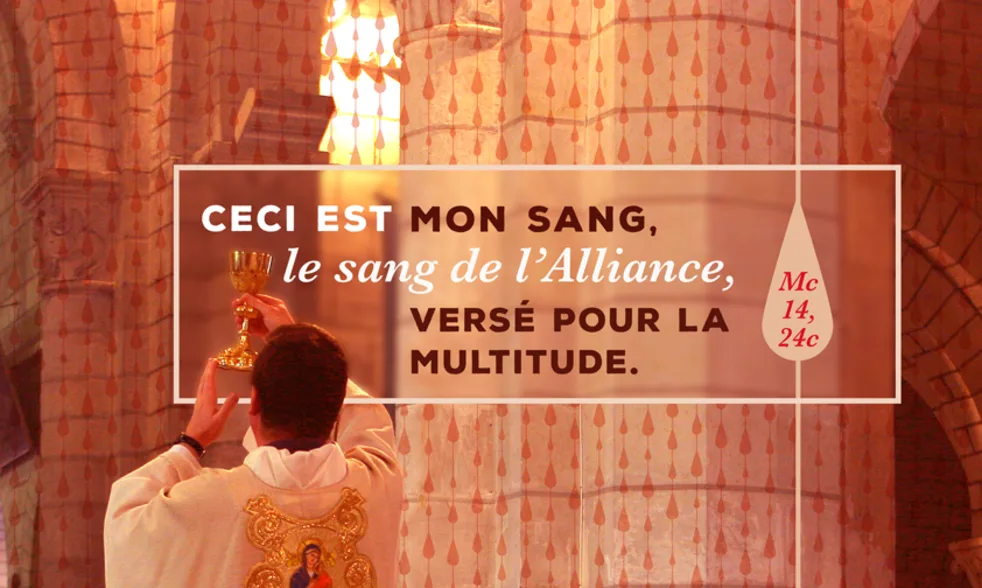 Pendant le repas, Jésus, ayant pris du pain et prononcé la bénédiction, le rompit, le leur donna, et dit: «Prenez, ceci est mon corps.» Puis, ayant pris une coupe et ayant rendu grâce, il la leur donna, et ils en burent tous. Et il leur dit: «Ceci est mon sang, le sang de l’Alliance, versé pour la multitude.» (Mc 14, 12-16.22-26)