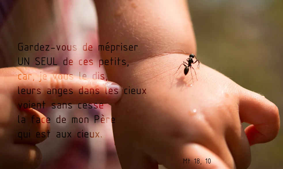 Et celui qui accueille un enfant comme celui-ci en mon nom, il m’accueille, moi. Gardez-vous de mépriser un seul de ces petits, car, je vous le dis, leurs anges dans les cieux voient sans cesse la face de mon Père qui est aux cieux. Quel est votre avis ? (Mt 18,1-5.10.12-14)