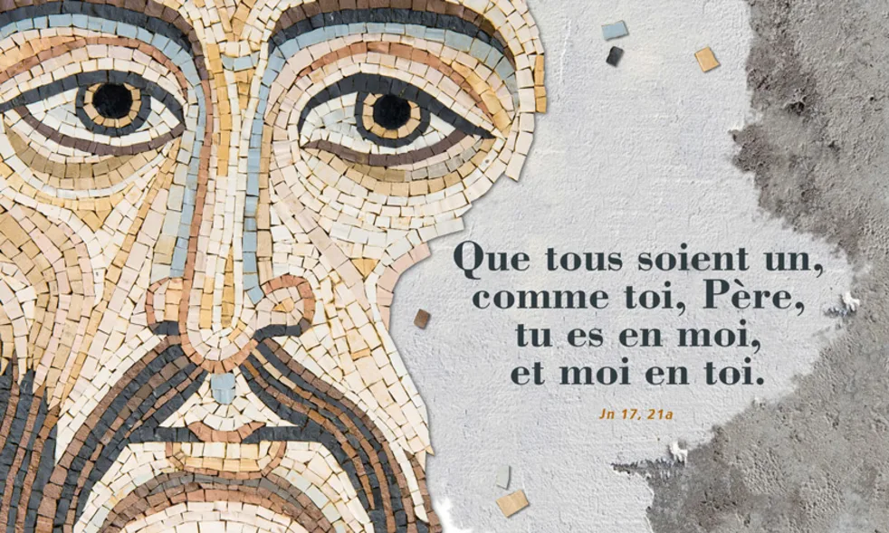 Que tous soient un, comme toi, Père, tu es en moi, et moi en toi. Qu’ils soient un en nous, eux aussi, pour que le monde croie que tu m’as envoyé. Et moi, je leur ai donné la gloire que tu m’as donnée, pour qu’ils soient un comme nous sommes UN: Moi en eux, et toi en moi. (Jn 17,20-26)