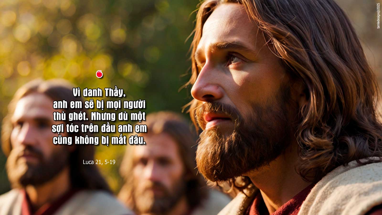 Khi ấy, nhân có mấy người nói về Đền Thờ được trang hoàng bằng những viên đá đẹp và những đồ dâng cúng, Đức Giê-su bảo: “Những gì anh em đang chiêm ngưỡng đó sẽ có ngày bị tàn phá hết, không còn tảng đá nào trên tảng đá nào.” Họ hỏi Người: “Thưa Thầy, vậy bao giờ các sự việc đó sẽ xảy ra, và khi sắp xảy ra, thì có điềm gì báo trước?” Đức Giê-su đáp: “Anh em hãy coi chừng kẻo bị lừa gạt, vì sẽ có nhiều người mạo danh Thầy đến nói rằng : ‘Chính ta đây’, và: ‘Thời kỳ đã đến gần’; anh em chớ có theo họ. Khi anh em nghe có chiến tranh, loạn lạc, thì đừng sợ hãi. Vì những việc đó phải xảy ra trước, nhưng chưa phải là chung cục ngay đâu.” Rồi Người nói tiếp: “Dân này sẽ nổi dậy chống dân kia, nước này chống nước nọ. Sẽ có những trận động đất lớn, và nhiều nơi sẽ có ôn dịch và đói kém; sẽ có những hiện tượng kinh khủng và điềm lạ lớn lao từ trời xuất hiện. “Nhưng trước khi tất cả các sự ấy xảy ra, thì người ta sẽ tra tay bắt và ngược đãi anh em, nộp anh em cho các hội đường và bỏ tù, điệu anh em đến trước mặt vua chúa quan quyền vì danh Thầy. Đó sẽ là cơ hội để anh em làm chứng cho Thầy. Vậy anh em hãy ghi lòng tạc dạ điều này, là anh em đừng lo nghĩ phải bào chữa cách nào. Vì chính Thầy sẽ cho anh em ăn nói thật khôn ngoan, khiến tất cả địch thủ của anh em không tài nào chống chọi hay cãi lại được. Anh em sẽ bị chính cha mẹ, anh chị em, bà con và bạn hữu bắt nộp. Họ sẽ giết một số người trong anh em. Vì danh Thầy, anh em sẽ bị mọi người thù ghét. Nhưng dù một sợi tóc trên đầu anh em cũng không bị mất đâu. Có kiên trì, anh em mới giữ được mạng sống mình. Đó là lời Chúa.