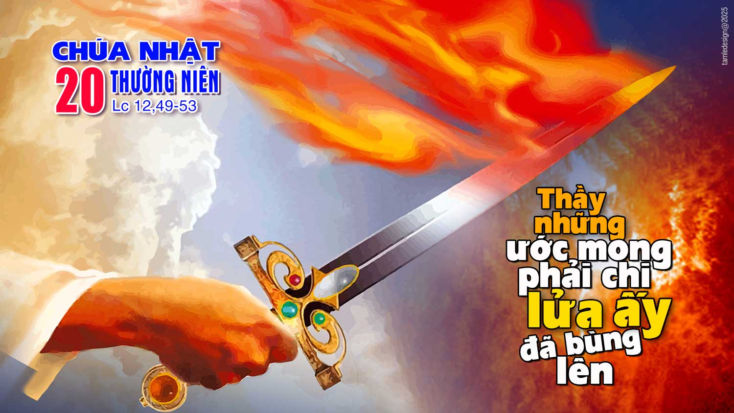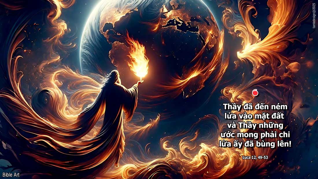 Khi ấy, Đức Giêsu nói với các môn đệ rằng: “Thầy đã đến ném lửa vào mặt đất, và Thầy những ước mong phải chi lửa ấy đã bùng lên! Thầy còn một phép rửa phải chịu, và lòng Thầy khắc khoải biết bao cho đến khi việc này hoàn tất! “Anh em tưởng rằng Thầy đến để ban hoà bình cho trái đất sao? Thầy bảo cho anh em biết: không phải thế đâu, nhưng là đem sự chia rẽ. Vì từ nay, năm người trong cùng một nhà sẽ chia rẽ nhau, ba chống lại hai, hai chống lại ba. Họ sẽ chia rẽ nhau: cha chống lại con trai, con trai chống lại cha; mẹ chống lại con gái, con gái chống lại mẹ; mẹ chồng chống lại nàng dâu, nàng dâu chống lại mẹ chồng.”. Ðó là lời Chúa.