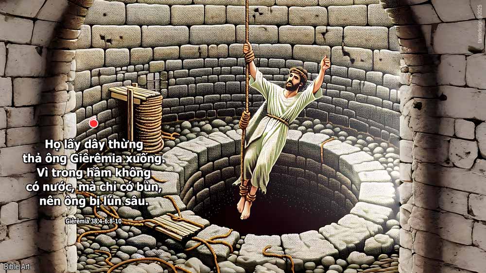 Hối ấy, các thủ lãnh thưa với vua Xít-ki-gia-hu: “Xin ngài cho giết Giê-rê-mi-a đi, vì những luận điệu của ông ta đã làm nản lòng các binh sĩ còn lại trong thành này, cũng như toàn dân. Thật vậy, con người ấy chẳng mưu hoà bình cho dân này, mà chỉ gây tai hoạ.” Vua Xít-ki-gia-hu nói: “Đây ông ta đang ở trong tay các ngươi; nhà vua cũng chẳng có thể làm gì trái ý các ngươi được.” Họ liền điệu ông Giê-rê-mi-a đi, và bỏ xuống một cái hầm nước của hoàng tử Man-ki-gia-hu, trong sân vệ binh. Họ lấy dây thừng thả ông Giê-rê-mi-a xuống. Vì trong hầm không có nước, mà chỉ có bùn, nên ông bị lún sâu.” Ông E-vét Me-léc đi ra khỏi đền vua và thưa với vua rằng: “Thưa đức vua, chúa thượng tôi, những người này làm toàn những chuyện tai ác cho ngôn sứ Giê-rê-mi-a. Họ đã thả ông xuống hầm, và ông đang chết đói ở dưới ấy, vì trong thành không còn bánh nữa. Vua liền truyền cho ông E-vét Me-léc, người Cút rằng: “Ngươi hãy đem theo ba mươi người ở đây, đi kéo ngôn sứ Giê-rê-mi-a lên khỏi hầm, kẻo ông chết mất.” Ðó là lời Chúa.
