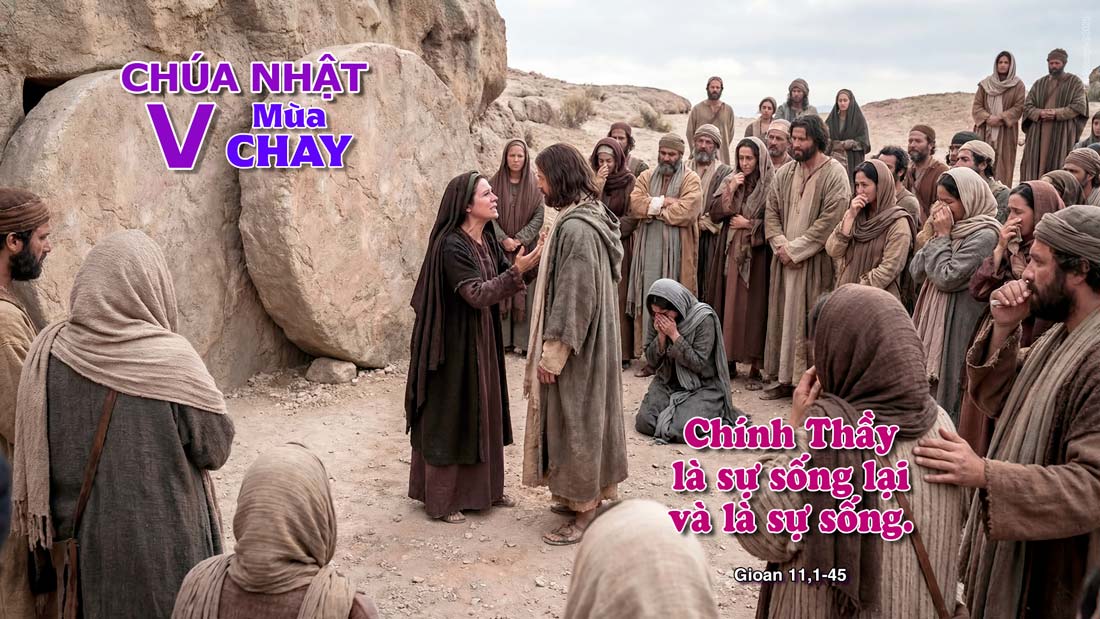 Hồi đó, có một người bị đau nặng, tên là La-da-rô, quê ở Bê-ta-ni-a, làng của hai chị em cô Mác-ta và Ma-ri-a. Cô Ma-ri-a là người sau này sẽ xức dầu thơm cho Chúa, và lấy tóc lau chân Người. Anh La-da-rô, người bị đau nặng, là em của cô. Hai cô cho người đến nói với Đức Giê-su: “Thưa Thầy, người Thầy thương mến đang bị đau nặng.” Nghe vậy, Đức Giê-su bảo: “Bệnh này không đến nỗi chết đâu, nhưng là dịp để bày tỏ vinh quang của Thiên Chúa: qua cơn bệnh này, Con Thiên Chúa được tôn vinh.” Đức Giê-su quý mến cô Mác-ta, cùng hai người em là cô Ma-ri-a và anh La-da-rô. Tuy nhiên, sau khi được tin anh La-da-rô lâm bệnh, Người còn lưu lại thêm hai ngày tại nơi đang ở. Rồi sau đó, Người nói với các môn đệ: “Nào chúng ta cùng trở lại miền Giu-đê!” Các môn đệ nói: “Thưa Thầy, mới đây người Do-thái tìm cách ném đá Thầy, mà Thầy lại còn đến đó sao?” Đức Giê-su trả lời: “Ban ngày chẳng có mười hai giờ đó sao? Ai đi ban ngày thì không vấp ngã, vì thấy ánh sáng của thế gian này. Còn ai đi ban đêm, thì vấp ngã vì không có ánh sáng nơi mình!” Người nói những lời này, sau đó Người lại bảo họ: “La-da-rô, bạn của chúng ta, đang yên giấc; tuy vậy, Thầy đi đánh thức anh ấy đây.” Các môn đệ nói với Người: “Thưa Thầy, nếu anh ấy yên giấc được, anh ấy sẽ khoẻ lại.” Đức Giê-su nói về cái chết của anh La-da-rô, còn họ tưởng Người nói về giấc ngủ thường. Bấy giờ Người mới nói rõ: “La-da-rô đã chết. Thầy mừng cho anh em, vì Thầy đã không có mặt ở đó, để anh em tin. Thôi, nào chúng ta đến với anh ấy.” Ông Tô-ma, gọi là Đi-đy-mô, nói với các bạn đồng môn: “Cả chúng ta nữa, chúng ta cũng đi để cùng chết với Thầy!” Khi đến nơi, Đức Giê-su thấy anh La-da-rô đã chôn trong mồ được bốn ngày rồi. Bê-ta-ni-a cách Giê-ru-sa-lem không đầy ba cây số. Nhiều người Do-thái đến chia buồn với hai cô Mác-ta và Ma-ri-a, vì em các cô mới qua đời. Vừa được tin Đức Giê-su đến, cô Mác-ta liền ra đón Người. Còn cô Ma-ri-a thì ngồi ở nhà. Cô Mác-ta nói với Đức Giê-su: “Thưa Thầy, nếu có Thầy ở đây, em con đã không chết. Nhưng bây giờ con biết: Bất cứ điều gì Thầy xin cùng Thiên Chúa, Người cũng sẽ ban cho Thầy.” Đức Giê-su nói: “Em chị sẽ sống lại!” Cô Mác-ta thưa: “Con biết em con sẽ sống lại, khi kẻ chết sống lại trong ngày sau hết.” Đức Giê-su liền phán: “Chính Thầy là sự sống lại và là sự sống. Ai tin vào Thầy, thì dù đã chết, cũng sẽ được sống. Ai sống và tin vào Thầy, sẽ không bao giờ phải chết. Chị có tin thế không?” Cô Mác-ta đáp: “Thưa Thầy, có. Con vẫn tin Thầy là Đức Ki-tô, Con Thiên Chúa, Đấng phải đến thế gian.” Nói xong, cô đi gọi em là Ma-ri-a, và nói nhỏ: “Thầy đến rồi, Thầy gọi em đấy!” Nghe vậy, cô Ma-ri-a vội đứng lên và đến với Đức Giê-su. Lúc đó, Người chưa vào làng, nhưng vẫn còn ở chỗ cô Mác-ta đã ra đón Người. Những người Do-thái đang ở trong nhà với cô Ma-ri-a để chia buồn, thấy cô vội vã đứng dậy đi ra, liền đi theo, tưởng rằng cô ra mộ khóc em. Khi đến gần Đức Giê-su, cô Ma-ri-a vừa thấy Người, liền phủ phục dưới chân và nói: “Thưa Thầy, nếu có Thầy ở đây, em con đã không chết.” Thấy cô khóc, và những người Do-thái đi với cô cũng khóc, Đức Giê-su thổn thức trong lòng và xao xuyến. Người hỏi: “Các người để xác anh ấy ở đâu?” Họ trả lời: “Thưa Thầy, mời Thầy đến mà xem.” Đức Giê-su liền khóc. Người Do-thái mới nói: “Kìa xem! Ông ta thương anh La-da-rô biết mấy!” Có vài người trong nhóm họ nói: “Ông ta đã mở mắt cho người mù, lại không thể làm cho anh ấy khỏi chết ư?” Đức Giê-su lại thổn thức trong lòng. Người đi tới mộ. Ngôi mộ đó là một cái hang có phiến đá đậy lại. Đức Giê-su nói: “Đem phiến đá này đi.” Cô Mác-ta là chị người chết liền nói: “Thưa Thầy, nặng mùi rồi, vì em con ở trong mồ đã được bốn ngày.” Đức Giê-su bảo: “Nào Thầy đã chẳng nói với chị rằng nếu chị tin, chị sẽ được thấy vinh quang của Thiên Chúa sao?” Rồi người ta đem phiến đá đi. Đức Giê-su ngước mắt lên và nói: “Lạy Cha, con cảm tạ Cha, vì Cha đã nhậm lời con. Phần con, con biết Cha hằng nhậm lời con, nhưng vì dân chúng đứng quanh đây, nên con đã nói để họ tin là Cha đã sai con.” Nói xong, Người kêu lớn tiếng: “Anh La-da-rô, hãy ra khỏi mồ!” Người chết liền ra, chân tay còn quấn vải, và mặt còn phủ khăn. Đức Giê-su bảo: “Cởi khăn và vải cho anh ấy, rồi để anh ấy đi.” Trong số những người Do-thái đến thăm cô Ma-ri-a và được chứng kiến việc Đức Giê-su làm, có nhiều kẻ đã tin vào Người. Đó là lời Chúa.