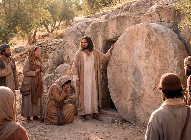 Jésus, repris par l’émotion, arriva au tombeau. C’était une grotte fermée par une pierre. Jésus dit : « Enlevez la pierre. » Marthe, la sœur du défunt, lui dit : « Seigneur, il sent déjà ; c’est le quatrième jour qu’il est là. » Alors Jésus dit à Marthe : « Ne te l’ai-je pas dit ? Si tu crois, tu verras la gloire de Dieu. » On enleva donc la pierre. (Jn 11, 1-45)