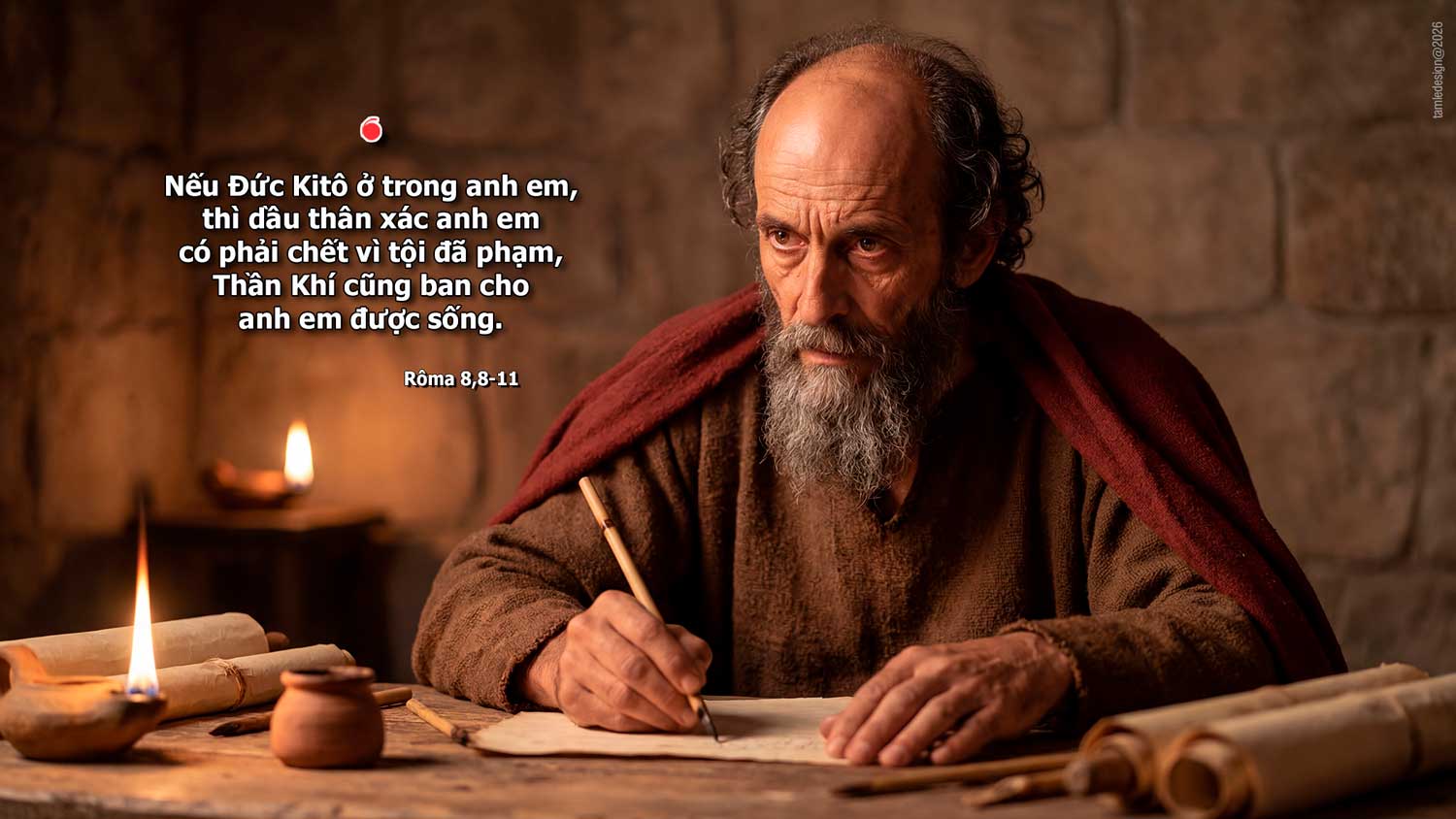 Thưa anh em, những ai bị tính xác thịt chi phối thì không thể vừa lòng Thiên Chúa. Nhưng anh em không bị tính xác thịt chi phối, mà được Thần Khí chi phối, bởi vì Thần Khí của Thiên Chúa ngự trong anh em. Ai không có Thần Khí của Đức Ki-tô, thì không thuộc về Đức Ki-tô. Nhưng nếu Đức Ki-tô ở trong anh em, thì dầu thân xác anh em có phải chết vì tội đã phạm, Thần Khí cũng ban cho anh em được sống, vì anh em đã được trở nên công chính. Lại nữa, nếu Thần Khí ngự trong anh em, Thần Khí của Đấng đã làm cho Đức Giê-su sống lại từ cõi chết, thì Đấng đã làm cho Đức Giê-su sống lại từ cõi chết, cũng sẽ dùng Thần Khí của Người đang ngự trong anh em, mà làm cho thân xác của anh em được sự sống mới. Đó là lời Chúa.