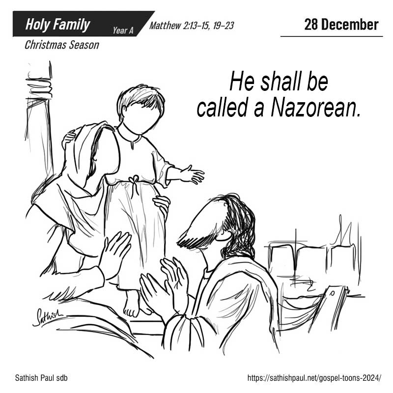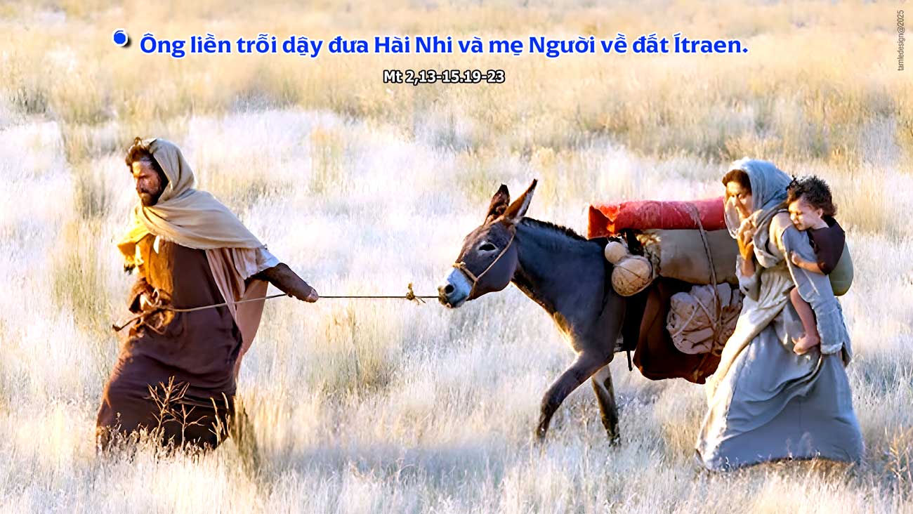 Khi các nhà chiêm tinh đã ra về, thì sứ thần Chúa hiện ra báo mộng cho ông Giu-se rằng: “Này ông, dậy đem Hài Nhi và mẹ Người trốn sang Ai-cập, và cứ ở đó cho đến khi tôi báo lại, vì vua Hê-rô-đê sắp tìm giết Hài Nhi đấy” Ông Giu-se liền trỗi dậy, và đang đêm, đưa Hài Nhi và mẹ Người trốn sang Ai-cập. Ông ở đó cho đến khi vua Hê-rô-đê băng hà, để ứng nghiệm lời Chúa phán xưa qua miệng ngôn sứ: Ta đã gọi con Ta ra khỏi Ai-cập. Sau khi vua Hê-rô-đê băng hà, sứ thần Chúa lại hiện ra với ông Giu-se bên Ai-cập, báo mộng cho ông rằng: “Này ông, dậy đem Hài Nhi và mẹ Người về đất Ít-ra-en, vì những kẻ tìm giết Hài Nhi đã chết rồi.” Ông liền trỗi dậy đưa Hài Nhi và mẹ Người về đất Ít-ra-en. Nhưng vì nghe biết Ác-khê-lao đã kế vị vua cha là Hê-rô-đê, cai trị miền Giu-đê, nên ông sợ không dám về đó. Rồi sau khi được báo mộng, ông lui về miền Ga-li-lê, và đến ở tại một thành kia gọi là Na-da-rét, để ứng nghiệm lời đã phán qua miệng các ngôn sứ rằng: Người sẽ được gọi là người Na-da-rét. Đó là lời Chúa.