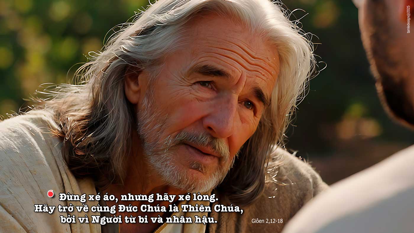 Đây là sấm ngôn của Đức Chúa: “Các ngươi hãy hết lòng trở về với Ta, hãy ăn chay, khóc lóc, và thống thiết than van.” Đừng xé áo, nhưng hãy xé lòng. Hãy trở về cùng Đức Chúa là Thiên Chúa của anh em, bởi vì Người từ bi và nhân hậu, chậm giận và giàu tình thương, Người hối tiếc vì đã giáng hoạ. Biết đâu Người chẳng nghĩ lại và hối tiếc mà để lại phúc lành, hầu anh em có lễ phẩm và lễ tưới rượu dâng lên Đức Chúa là Thiên Chúa của anh em. Hãy rúc tù và tại Xi-on, ra lệnh giữ chay thánh, công bố mở cuộc họp long trọng; hãy tụ tập chúng dân, mời dự đại hội thánh, triệu tập các cụ già, tụ họp đám thiếu nhi cũng như trẻ thơ còn đang bú. Tân lang hãy ra khỏi loan phòng, tân nương hãy ra khỏi phòng khuê! Giữa tiền đình và tế đàn, các tư tế phụng sự Đức Chúa hãy than khóc và nói rằng: “Lạy Đức Chúa, xin dủ lòng thương xót dân Ngài! Xin đừng để gia nghiệp của Ngài phải nhục nhã và nên trò cười cho dân ngoại! Chẳng lẽ các dân lại được cớ mà nói: Thiên Chúa của chúng ở đâu rồi?” Đức Chúa đã nồng nhiệt yêu thương đất của Người, đã tỏ lòng khoan dung đối với dân Người. Đó là lời Chúa.