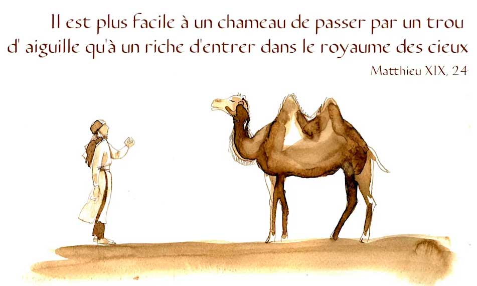 Jésus disait à ses disciples : « Amen, je vous le dis : un riche entrera difficilement dans le royaume des Cieux. Je vous le répète : il est plus facile à un chameau de passer par un trou d’aiguille qu’à un riche d’entrer dans le royaume des Cieux. » Entendant ces paroles, les disciples furent profondément déconcertés, et ils disaient : « Qui donc peut être sauvé ? » Jésus posa sur eux son regard et dit : « Pour les hommes, c’est impossible, mais pour Dieu tout est possible. » (Mt 19, 23-30)