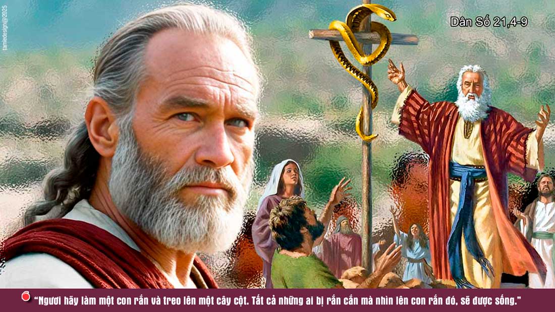 Hồi đó, dân Ít-ra-en từ núi Ho, họ lên đường theo đường Biển Sậy, vòng qua lãnh thổ Ê-đôm; trong cuộc hành trình qua sa mạc, dân Ít-ra-en mất kiên nhẫn. Họ kêu trách Thiên Chúa và ông Mô-sê rằng: “Tại sao lại đưa chúng tôi ra khỏi đất Ai-cập, để chúng tôi chết trong sa mạc, một nơi chẳng có bánh ăn, chẳng có nước uống? Chúng tôi đã chán ngấy thứ đồ ăn vô vị này.” Bấy giờ Đức Chúa cho rắn độc đến hại dân. Chúng cắn họ, khiến nhiều người Ít-ra-en phải chết. Dân đến nói với ông Mô-sê: “Chúng tôi đã phạm tội, vì đã kêu trách Đức Chúa và kêu trách ông. Xin ông khẩn cầu Đức Chúa để Người xua đuổi rắn xa chúng tôi.” Ông Mô-sê khẩn cầu cho dân. Đức Chúa liền nói với ông: “Ngươi hãy làm một con rắn và treo lên một cây cột. Tất cả những ai bị rắn cắn mà nhìn lên con rắn đó, sẽ được sống.” Ông Mô-sê bèn làm một con rắn bằng đồng và treo lên một cây cột. Và hễ ai bị rắn cắn mà nhìn lên con rắn đồng, thì được sống. Đó là lời Chúa.