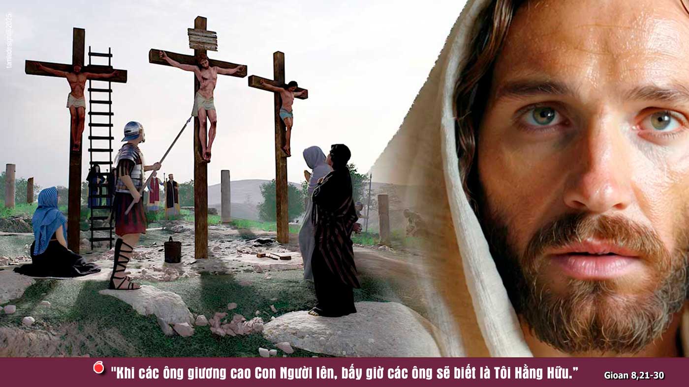 Khi ấy, Đức Giê-su nói với họ: “Tôi ra đi, các ông sẽ tìm tôi, và các ông sẽ mang tội mình mà chết. Nơi tôi đi, các ông không thể đến được.” Người Do-thái mới nói: “Ông ấy sẽ tự tử hay sao mà lại nói: ‘Nơi tôi đi, các ông không thể đến được’?” Người bảo họ:  “Các ông bởi hạ giới; còn tôi, tôi bởi thượng giới. Các ông thuộc về thế gian này; còn tôi, tôi không thuộc về thế gian này. Tôi đã nói với các ông là các ông sẽ mang tội lỗi mình mà chết. Thật vậy, nếu các ông không tin là Tôi Hằng Hữu, các ông sẽ mang tội lỗi mình mà chết.” Họ liền hỏi Người: “Ông là ai?” Đức Giê-su đáp: “Hoàn toàn đúng như tôi vừa nói với các ông đó. Tôi còn có nhiều điều phải nói và xét đoán về các ông. Nhưng Đấng đã sai tôi là Đấng chân thật; còn tôi, tôi nói lại cho thế gian những điều tôi đã nghe Người nói.” Họ không hiểu là Đức Giê-su nói với họ về Chúa Cha. Người bảo họ: “Khi các ông giương cao Con Người lên, bấy giờ các ông sẽ biết là Tôi Hằng Hữu, và biết tôi không tự mình làm bất cứ điều gì, nhưng Chúa Cha đã dạy tôi thế nào, thì tôi nói như vậy. Đấng đã sai tôi vẫn ở với tôi; Người không để tôi cô độc, vì tôi hằng làm những điều đẹp ý Người.” Khi Đức Giê-su nói thế, thì có nhiều kẻ tin vào Người.” Đó là lời Chúa.