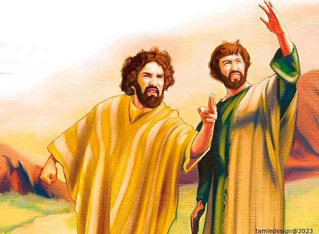 Khi đã tới ngày Đức Giê-su được rước lên trời, Người nhất quyết đi lên Giê-ru-sa-lem. Người sai mấy sứ giả đi trước. Họ lên đường và vào một làng người Sa-ma-ri để chuẩn bị cho Người đến. Nhưng dân làng không đón tiếp Người, vì Người đang đi về hướng Giê-ru-sa-lem. Thấy thế, hai môn đệ Người là ông Gia-cô-bê và ông Gio-an nói rằng : “Thưa Thầy, Thầy có muốn chúng con khiến lửa từ trời xuống thiêu huỷ chúng nó không ?” Nhưng Đức Giê-su quay lại quở mắng các ông. Rồi Thầy trò đi sang làng khác.