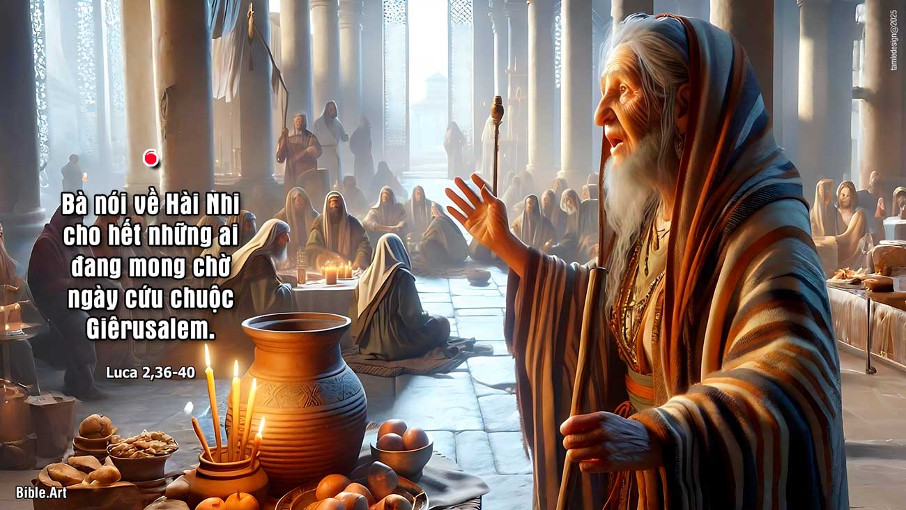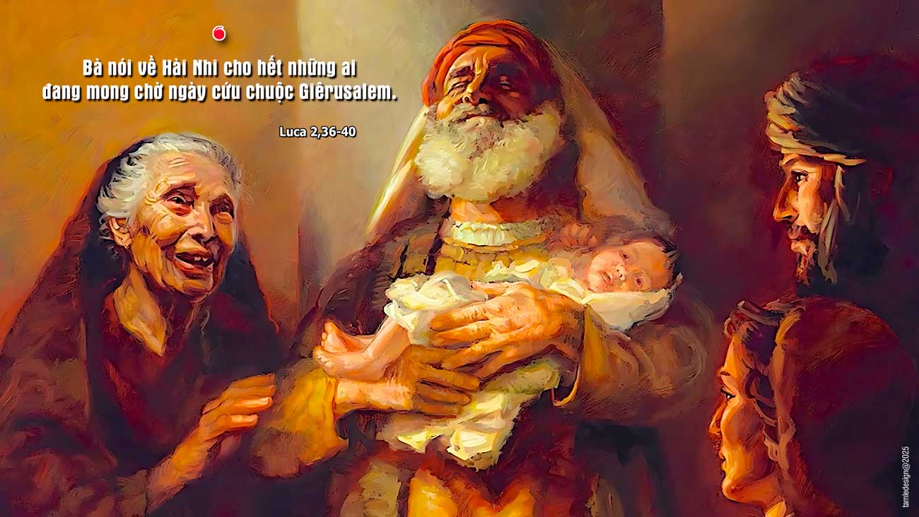 Khi ấy, có một nữ ngôn sứ tên là An-na, con ông Pơ-nu-en, thuộc chi tộc A-se. Bà đã nhiều tuổi lắm. Từ khi xuất giá, bà đã sống với chồng được bảy năm, rồi ở goá, đến nay đã tám mươi tư tuổi. Bà không rời bỏ Đền Thờ, những ăn chay cầu nguyện, sớm hôm thờ phượng Thiên Chúa. Cũng vào lúc ấy, bà tiến lại gần bên, cảm tạ Thiên Chúa, và nói về Hài Nhi cho hết những ai đang mong chờ ngày Thiên Chúa cứu chuộc Giê-ru-sa-lem. Khi hai ông bà đã làm xong mọi việc như Luật Chúa truyền, thì trở về nơi cư ngụ là thành Na-da-rét, miền Ga-li-lê. Còn Hài Nhi, ngày càng lớn lên, thêm vững mạnh, đầy khôn ngoan, và hằng được ân nghĩa cùng Thiên Chúa. Đó là lời Chúa.