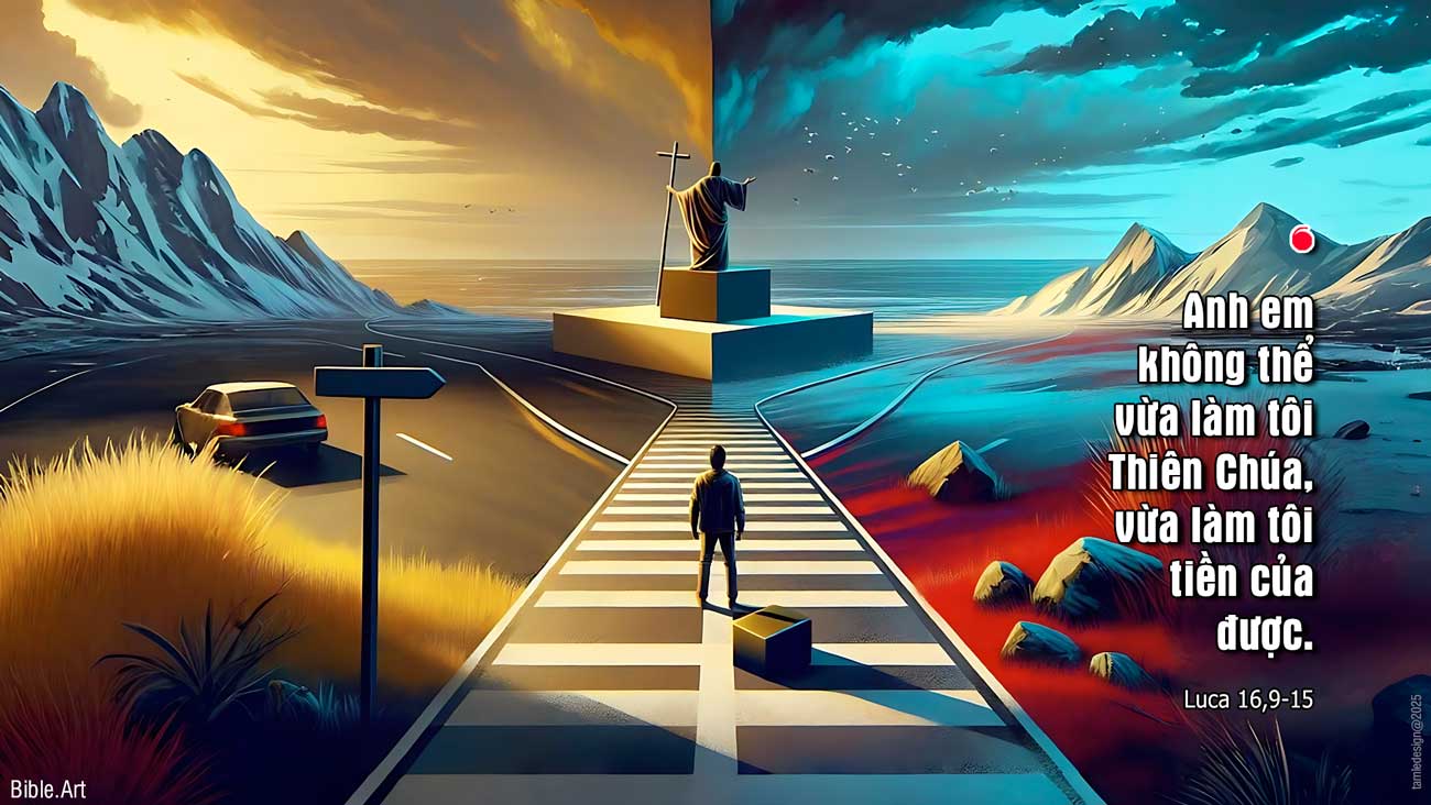 Khi ấy, Đức Giê-su nói với các môn đệ rằng: “Thầy bảo cho anh em biết: hãy dùng tiền của bất chính mà tạo lấy bạn bè, phòng khi hết tiền hết bạc, họ sẽ đón rước anh em vào nơi ở vĩnh cửu. Ai trung tín trong việc rất nhỏ, thì cũng trung tín trong việc lớn; ai bất lương trong việc rất nhỏ, thì cũng bất lương trong việc lớn. Vậy nếu anh em không trung tín trong việc sử dụng tiền của bất chính, thì ai sẽ tín nhiệm mà giao phó của cải chân thật cho anh em? Và nếu anh em không trung tín trong việc sử dụng của cải của người khác, thì ai sẽ ban cho anh em của cải dành riêng cho anh em? “Không gia nhân nào có thể làm tôi hai chủ, vì hoặc sẽ ghét chủ này mà yêu chủ kia, hoặc sẽ gắn bó với chủ này mà khinh dể chủ nọ. Anh em không thể vừa làm tôi Thiên Chúa, vừa làm tôi tiền của được”. Người Pha-ri-sêu vốn ham hố tiền bạc, nên nghe các điều ấy, thì cười nhạo Đức Giê-su. Người bảo họ: “Các ông là những kẻ làm ra bộ công chính trước mặt người đời, nhưng Thiên Chúa thấu biết lòng các ông, bởi vì điều cao trọng đối với người đời lại là điều ghê tởm trước mặt Thiên Chúa.” Đó là lời Chúa.