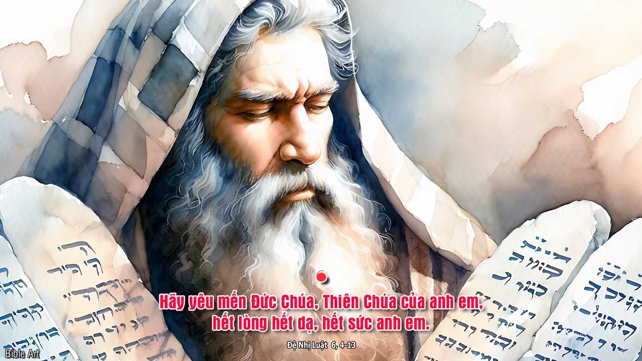 Khi ấy, ông Mô sê nói với dân rằng: “Nghe đây, hỡi Ít-ra-en! Đức Chúa, Thiên Chúa chúng ta, là Đức Chúa duy nhất. Hãy yêu mến Đức Chúa, Thiên Chúa của anh em, hết lòng hết dạ, hết sức anh em. Những lời này tôi truyền cho anh em hôm nay, anh em phải ghi tạc vào lòng. Anh em phải lặp lại những lời ấy cho con cái, phải nói lại cho chúng, lúc ngồi trong nhà cũng như lúc đi đường, khi đi ngủ cũng như khi thức dậy, phải buộc những lời ấy vào tay làm dấu, mang trên trán làm phù hiệu, phải viết lên khung cửa nhà anh em, và lên cửa thành của anh em. Khi Đức Chúa, Thiên Chúa của anh em, đưa anh em vào đất Người đã thề với cha ông anh em, là ông Áp-ra-ham, ông I-xa-ác và ông Gia-cóp, rằng Người sẽ ban cho anh em; khi anh em được những thành lớn và đẹp mà anh em đã không xây, những nhà đầy mọi thứ của cải mà anh em đã không để vào đó, những bể nước đào sẵn mà anh em đã không đào, những vườn nho và vườn ô-liu mà anh em đã không trồng; khi anh em được ăn uống no nê, thì phải ý tứ đừng quên Đức Chúa, Đấng đã đưa anh em ra khỏi đất Ai-cập, khỏi cảnh nô lệ. Chính Đức Chúa, Thiên Chúa của anh em, là Đấng anh em phải kính sợ; chính Người là Đấng anh em phải phụng thờ; anh em sẽ nhân danh Người mà thề. Đó là lời Chúa.