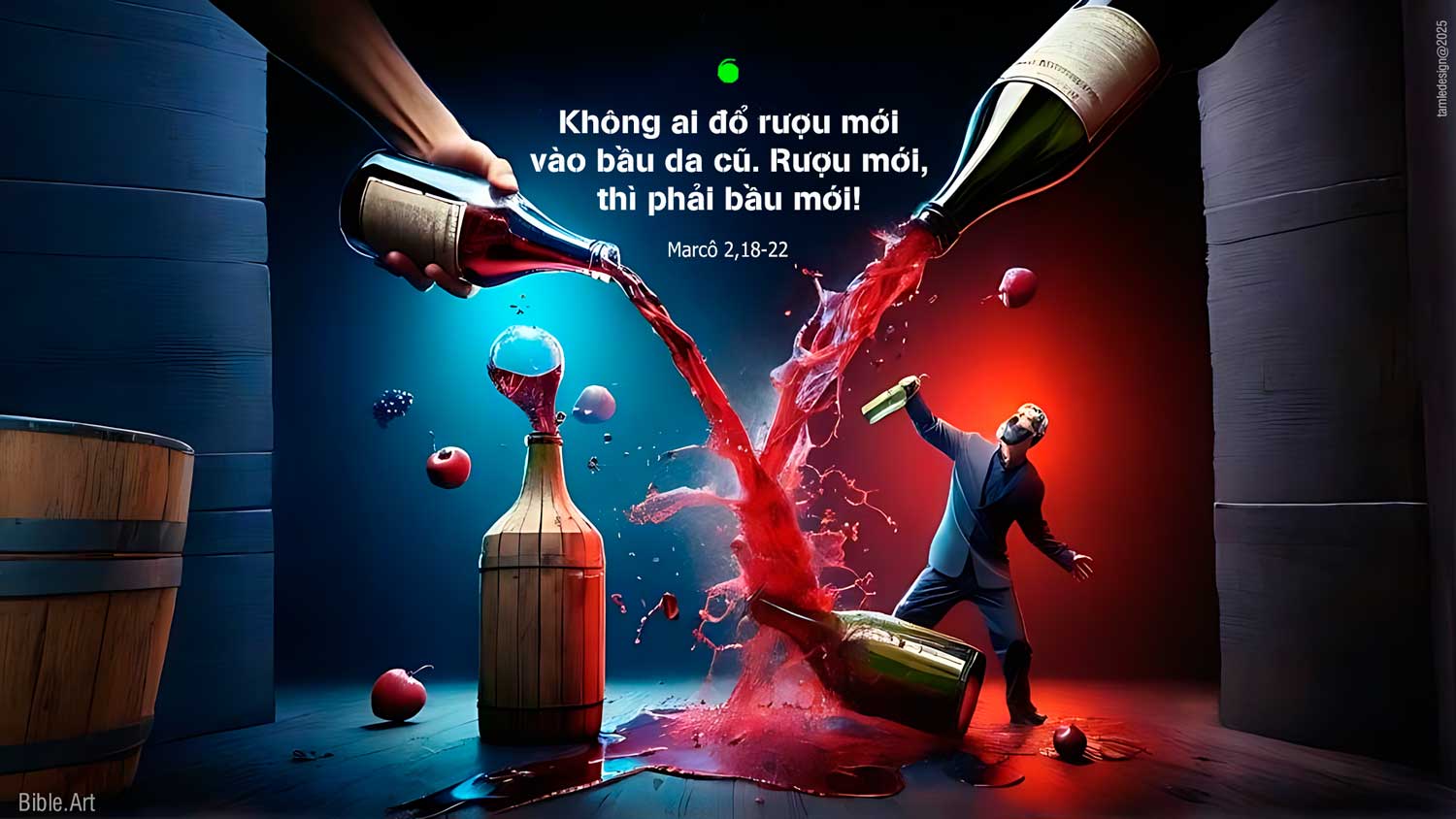 Bấy giờ, các môn đệ ông Gio-an và các người Pha-ri-sêu đang ăn chay; có người đến hỏi Đức Giê-su: “Tại sao các môn đệ ông Gio-an và các môn đệ người Pha-ri-sêu ăn chay, mà môn đệ ông lại không ăn chay?” Đức Giê-su trả lời: “Chẳng lẽ khách dự tiệc cưới lại có thể ăn chay, khi chàng rể còn ở với họ? Bao lâu chàng rể còn ở với họ, họ không thể ăn chay được. Nhưng khi tới ngày chàng rể đã bị đem đi, bấy giờ họ mới ăn chay trong ngày đó. Chẳng ai lấy vải mới mà vá áo cũ, vì như vậy, miếng mới đã vá vào sẽ kéo vải cũ, khiến chỗ rách lại càng rách thêm. Cũng không ai đổ rượu mới vào bầu da cũ, vì như vậy, rượu sẽ làm nứt bầu, thế là rượu cũng mất mà bầu cũng hư. Nhưng rượu mới, thì phải bầu mới!” Đó là lời Chúa.