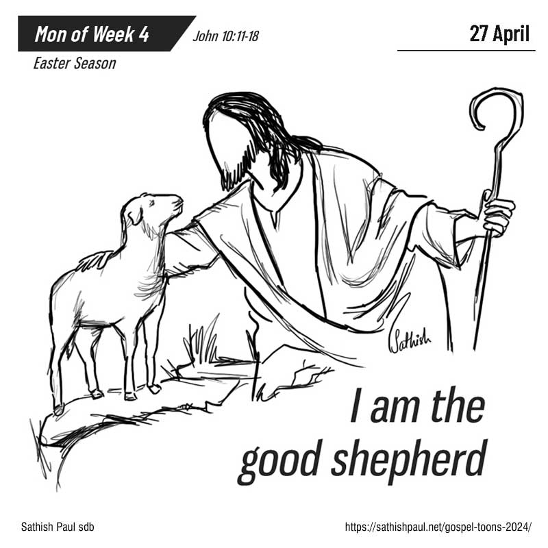 Khi ấy, Đức Giê-su nói với người Do-thái rằng: “Tôi chính là Mục Tử nhân lành. Mục Tử nhân lành hy sinh mạng sống mình cho đoàn chiên. Người làm thuê, vì không phải là mục tử, và vì chiên không thuộc về anh, nên khi thấy sói đến, anh bỏ chiên mà chạy. Sói vồ lấy chiên và làm cho chiên tán loạn, vì anh ta là kẻ làm thuê và không thiết gì đến chiên. Tôi chính là Mục Tử nhân lành. Tôi biết chiên của tôi và chiên của tôi biết tôi, như Chúa Cha biết tôi và tôi biết Chúa Cha, và tôi hy sinh mạng sống mình cho đoàn chiên. Tôi còn có những chiên khác không thuộc ràn này. Tôi cũng phải đưa chúng về. Chúng sẽ nghe tiếng tôi. Và sẽ chỉ có một đoàn chiên và một mục tử. Sở dĩ Chúa Cha yêu mến tôi, là vì tôi hy sinh mạng sống mình để rồi lấy lại. Mạng sống của tôi, không ai lấy đi được, nhưng chính tôi tự ý hy sinh mạng sống mình. Tôi có quyền hy sinh và có quyền lấy lại mạng sống ấy. Đó là mệnh lệnh của Cha tôi mà tôi đã nhận được. Đó là lời Chúa.