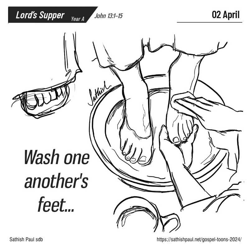 Vous m’appelez “Maître” et “Seigneur”, et vous avez raison, car vraiment je le suis. Si donc moi, le Seigneur et le Maître, je vous ai lavé les pieds, vous aussi, vous devez vous laver les pieds les uns aux autres. C’est un exemple que je vous ai donné afin que vous fassiez, vous aussi, comme j’ai fait pour vous. » (Jn 13, 1-15)
