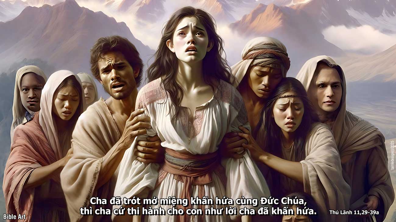 Khi ấy, thần khí của Đức Chúa ở trên ông Gíp-tác và ông đã sang Ga-la-át và Mơ-na-se, rồi qua Mít-pa Ga-la-át, và từ Mít-pa Ga-la-át ông qua đánh con cái Am-mon. Ông Gíp-tác khấn hứa với Đức Chúa rằng : “Nếu Ngài trao con cái Am-mon vào tay con, thì -khi con đã thắng con cái Am-mon mà trở về bình an- hễ người nào ra khỏi cửa nhà con để đón con, người đó sẽ thuộc về Đức Chúa, và con sẽ dâng nó làm lễ toàn thiêu.” Ông Gíp-tác qua bên con cái Am-mon để giao chiến với chúng, và Đức Chúa đã trao chúng vào tay ông. Ông đánh chúng tơi bời từ A-rô-e cho tới gần Min-nít, tất cả là hai mươi thành, và cho tới A-vên Cơ-ra-mim. Thật là một cuộc đại bại : con cái Am-mon bị hạ nhục trước mặt con cái Ít-ra-en. Khi ông Gíp-tác trở về Mít-pa, tới nhà ông, thì này con gái ông ra đón ông, vừa đánh trống vừa nhảy múa. Cô là con gái độc nhất của ông : ngoài cô ra, ông không có con trai con gái nào khác. Thoạt nhìn thấy cô, ông liền xé áo và nói : “Ôi, con gái của cha, thật con làm khổ cha rồi ! Chính con lại ở trong số những kẻ gây bất hạnh cho cha ! Cha đã trót mở miệng khấn hứa cùng Đức Chúa và không thể rút lại được.” Cô thưa với ông : “Thưa cha, cha đã trót mở miệng khấn hứa cùng Đức Chúa, thì cha cứ thi hành cho con như lời cha đã khấn hứa, vì Đức Chúa đã cho cha trả thù được con cái Am-mon, kẻ thù của cha.” Cô lại nói với cha : “Con chỉ xin cha điều này thôi, là hoãn cho con hai tháng để cùng với bạn bè, con rảo quanh núi đồi, mà khóc cho đời con gái của con.” Ông nói : “Con cứ đi”, và ông để cho cô đi hai tháng. Cô ra đi cùng với các bạn, rảo quanh đồi núi mà khóc cho nỗi bất hạnh của mình. Hết hai tháng, cô trở về với cha, và ông thi hành cho cô lời ông đã khấn hứa. Đó là Lời Chúa.