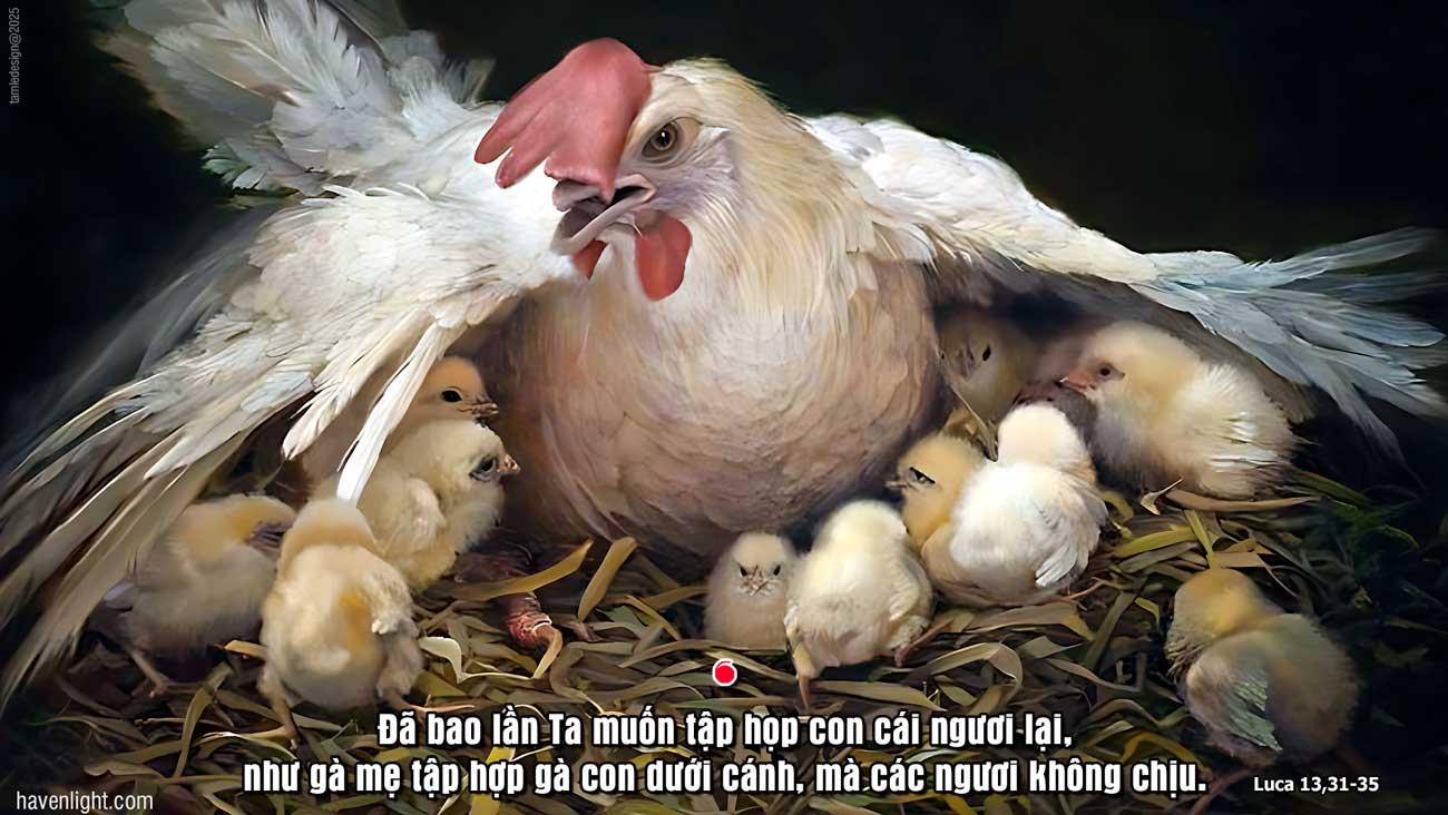 Mais il me faut continuer ma route aujourd’hui, demain et le jour suivant, car il ne convient pas qu’un prophète périsse en dehors de Jérusalem. Jérusalem, Jérusalem, toi qui tues les prophètes et qui lapides ceux qui te sont envoyés, combien de fois ai-je voulu rassembler tes enfants comme la poule rassemble ses poussins sous ses ailes, et vous n’avez pas voulu ! (Lc 13, 31-35)