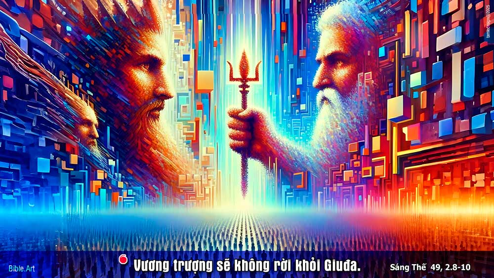 Hồi đó, ông Gia-cóp gọi các con trai lại và nói: “Hỡi các con của Gia-cóp, hãy tụ tập lại mà nghe, hãy nghe Ít-ra-en, cha các con… Giu-đa, con sẽ được anh em con ca tụng, tay con sẽ đặt trên ót các địch thù, anh em cùng cha với con sẽ sụp xuống lạy con. Giu-đa là sư tử con. Con ơi, săn mồi xong con lại trở về. Nó quỳ xuống, nằm phục như sư tử và như sư tử cái: ai sẽ làm cho nó đứng dậy? Vương trượng sẽ không rời khỏi Giu-đa, gậy chỉ huy sẽ không lìa đầu gối nó, cho tới khi người làm chủ vương trượng đến, người mà muôn dân phải vâng phục.” Đó là lời Chúa.