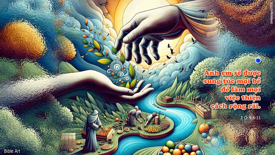 Thưa anh em, tôi xin nói điều này: gieo ít thì gặt ít; gieo nhiều thì gặt nhiều. Mỗi người hãy cho tuỳ theo quyết định của lòng mình, không buồn phiền, cũng không miễn cưỡng, vì ai vui vẻ dâng hiến, thì được Thiên Chúa yêu thương. Vả lại, Thiên Chúa có đủ quyền tuôn đổ xuống trên anh em mọi thứ ân huệ, để anh em vừa được luôn đầy đủ mọi mặt, vừa được dư thừa mà làm mọi việc thiện, theo như lời đã chép: Kẻ túng nghèo, Người rộng tay làm phúc; đức công chính của Người tồn tại muôn đời. Đấng cung cấp hạt giống cho kẻ gieo, và bánh làm của ăn nuôi dưỡng, tất sẽ cung cấp dư dật hạt giống cho anh em gieo, và sẽ làm cho đức công chính của anh em sinh hoa kết quả dồi dào. Anh em sẽ được sung túc mọi bề để làm mọi việc thiện cách rộng rãi. Những việc chúng ta làm sẽ khiến người ta dâng lời cảm tạ Thiên Chúa. Đó là lời Chúa.