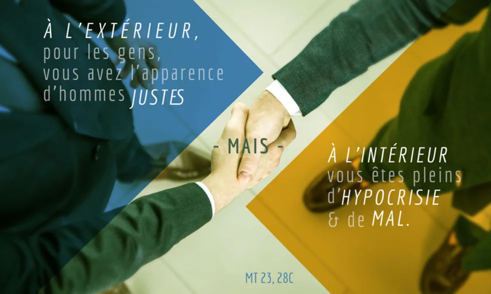 C’est ainsi que vous, à l’extérieur, pour les gens, vous avez l’apparence d’hommes justes, mais à l’intérieur vous êtes pleins d’hypocrisie et de mal. Malheureux êtes-vous, scribes et pharisiens hypocrites, parce que vous bâtissez les sépulcres des prophètes, vous décorez les tombeaux des justes, et vous dites : “Si nous avions vécu à l’époque de nos pères, no us n’aurions pas été leurs complices pour verser le sang des prophètes.” (Mt 23, 27-32)