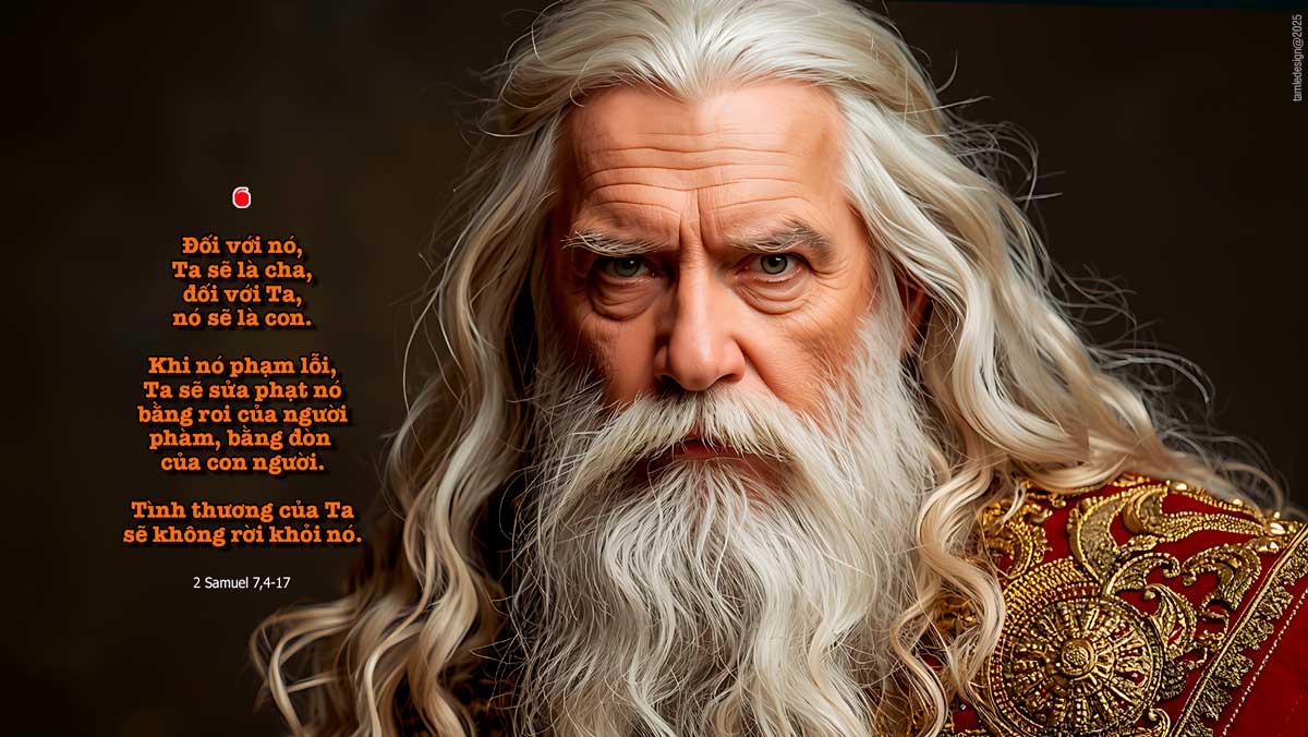 Đêm ấy, có lời Đức Chúa phán với ông Na-than rằng : « Hãy đi nói với tôi tớ của Ta là Đa-vít : Đức Chúa phán thế này : Ngươi mà xây nhà cho Ta ở sao? Thật vậy, từ ngày Ta đưa con cái Ít-ra-en lên từ Ai-cập cho tới ngày hôm nay, Ta không hề ở trong một ngôi nhà, nhưng Ta đã nay đây mai đó trong một cái lều và trong một nhà tạm. Trong suốt thời gian rày đây mai đó với toàn thể con cái Ít-ra-en, có bao giờ Ta đã lên tiếng hỏi một trong các thủ lãnh Ít-ra-en mà Ta đã đặt lên chăn dắt dân Ta là Ít-ra-en : ‘Sao các ngươi không xây cho Ta một ngôi nhà bằng gỗ bá hương?’ Bây giờ ngươi hãy nói với tôi tớ Ta là Đa-vít như sau : Đức Chúa các đạo binh phán thế này : Chính Ta đã cất nhắc ngươi, từ một kẻ lùa chiên ngoài đồng cỏ, lên làm người lãnh đạo dân Ta là Ít-ra-en. Ngươi đi đâu, Ta cũng đã ở với ngươi; mọi thù địch ngươi, Ta đã diệt trừ cho khuất mắt ngươi. Ta sẽ làm cho tên tuổi ngươi lẫy lừng, như tên tuổi những bậc vĩ nhân trên mặt đất. Ta sẽ cho dân Ta là Ít-ra-en một chỗ ở, Ta sẽ định cư chúng, và chúng sẽ ở luôn tại đó, chúng sẽ không còn run sợ, và quân gian ác cũng không còn tiếp tục áp bức chúng như thuở ban đầu, kể từ thời Ta đặt các thủ lãnh cai quản dân Ta là Ít-ra-en. Ta sẽ cho ngươi được thảnh thơi, không còn thù địch nào nữa, Đức Chúa báo cho ngươi biết là Đức Chúa lập cho ngươi một nhà. Khi ngày đời của ngươi đã mãn và ngươi đã nằm xuống với cha ông, Ta sẽ cho dòng dõi ngươi đứng lên kế vị ngươi –một người do chính ngươi sinh ra-, và Ta sẽ làm cho vương quyền của nó được vững bền. Chính nó sẽ xây một nhà để tôn kính danh Ta, và Ta sẽ làm cho ngai vàng của nó vững bền mãi mãi. Đối với nó, Ta sẽ là cha, đối với Ta, nó sẽ là con. Khi nó phạm lỗi, Ta sẽ sửa phạt nó bằng roi của người phàm, bằng đòn của con người. Tình thương của Ta sẽ không rời khỏi nó, như Ta đã cho rời khỏi Sa-un, kẻ Ta đã bắt rời khỏi mặt ngươi. Nhà của ngươi và vương quyền của ngươi sẽ tồn tại mãi mãi trước mặt Ta; ngai vàng của ngươi sẽ vững bền mãi mãi. » Ông Na-than đã nói lại với vua Đa-vít, đúng y như tất cả những lời ấy và tất cả thị kiến ấy. Đó là lời Chúa.