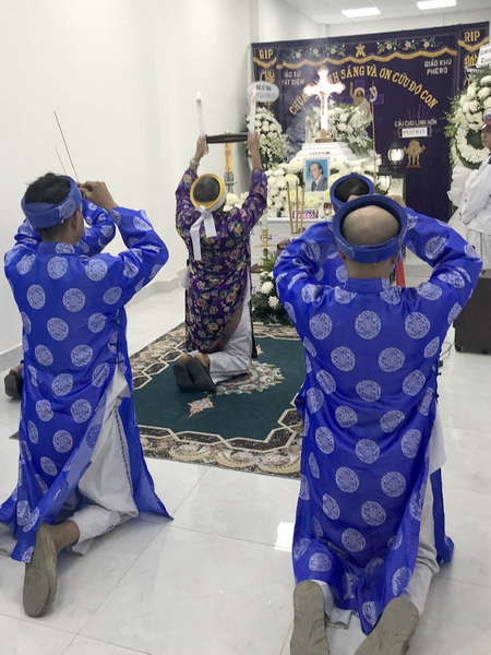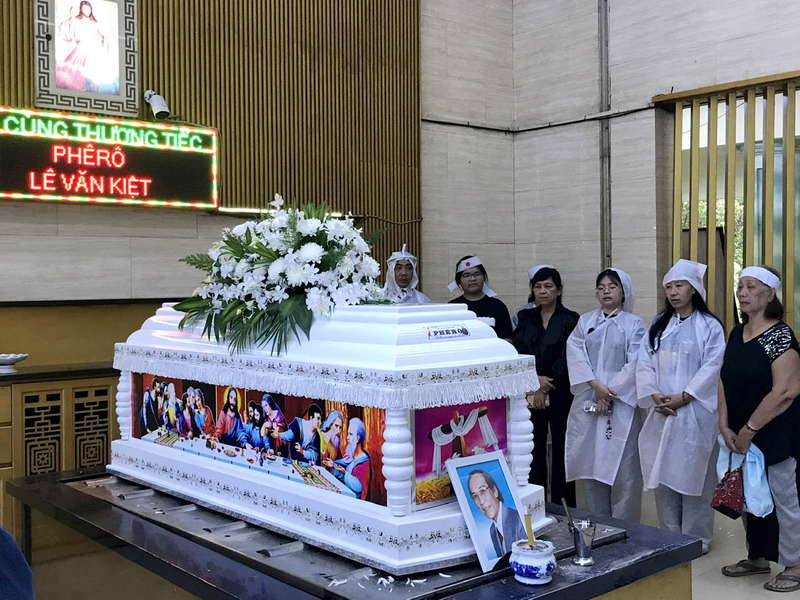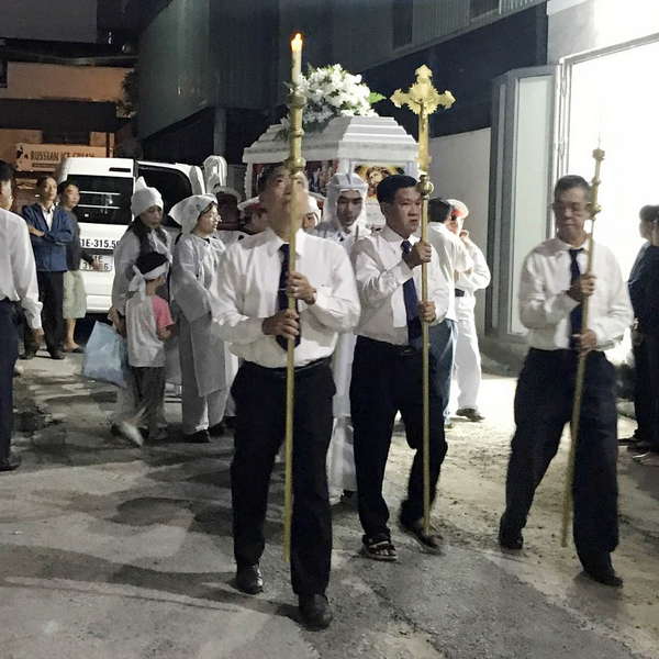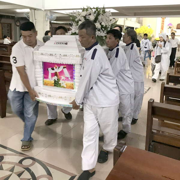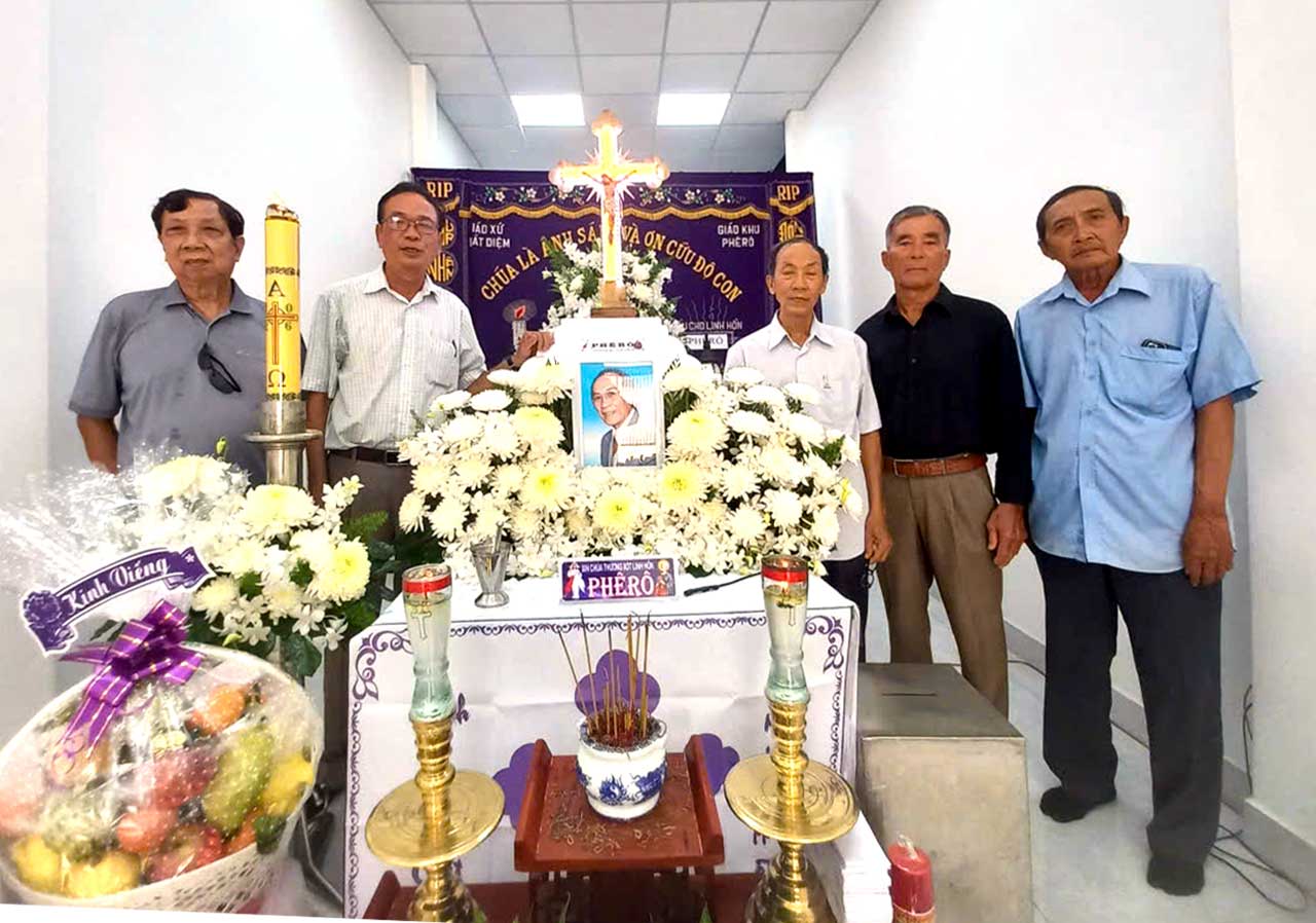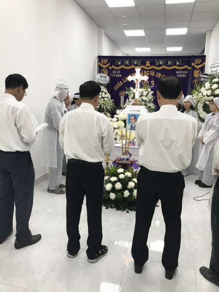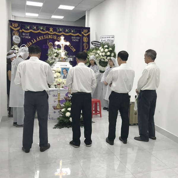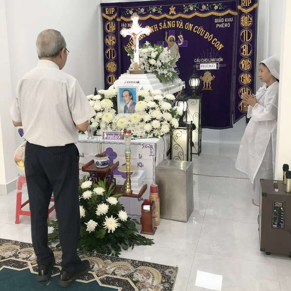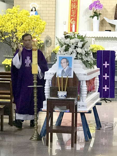 Cha Nguyễn Duy viếng xác tại Nhà Chờ giáo xứ Phát Diệm.