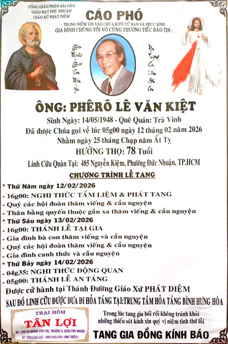 Chiều nay tẩn liệm và quàn tại nhà chờ giáo xứ Phát Diệm.