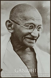 GANDHI (1869-1948), tên đầy đủ là MOHANDAS KARAMCHAND GANDHI, tên thường gọi là MAHATMA GANDHI, (Mahatma theo ngôn ngữ Ấn Giáo là “tâm hồn cao cả”, như chữ “thánh thiện” của Công Giáo) là một nhà yêu nước Ấn Độ và là tín đồ Ấn Giáo, nhưng ông rất kính yêu Chúa Giê-su. Đường lối đấu tranh bất bạo động để dành độc lập cho Ấn Độ, được ông học hỏi theo tinh thần Bài Giảng Tám Mối Phúc Thật của Đức Giê-su.